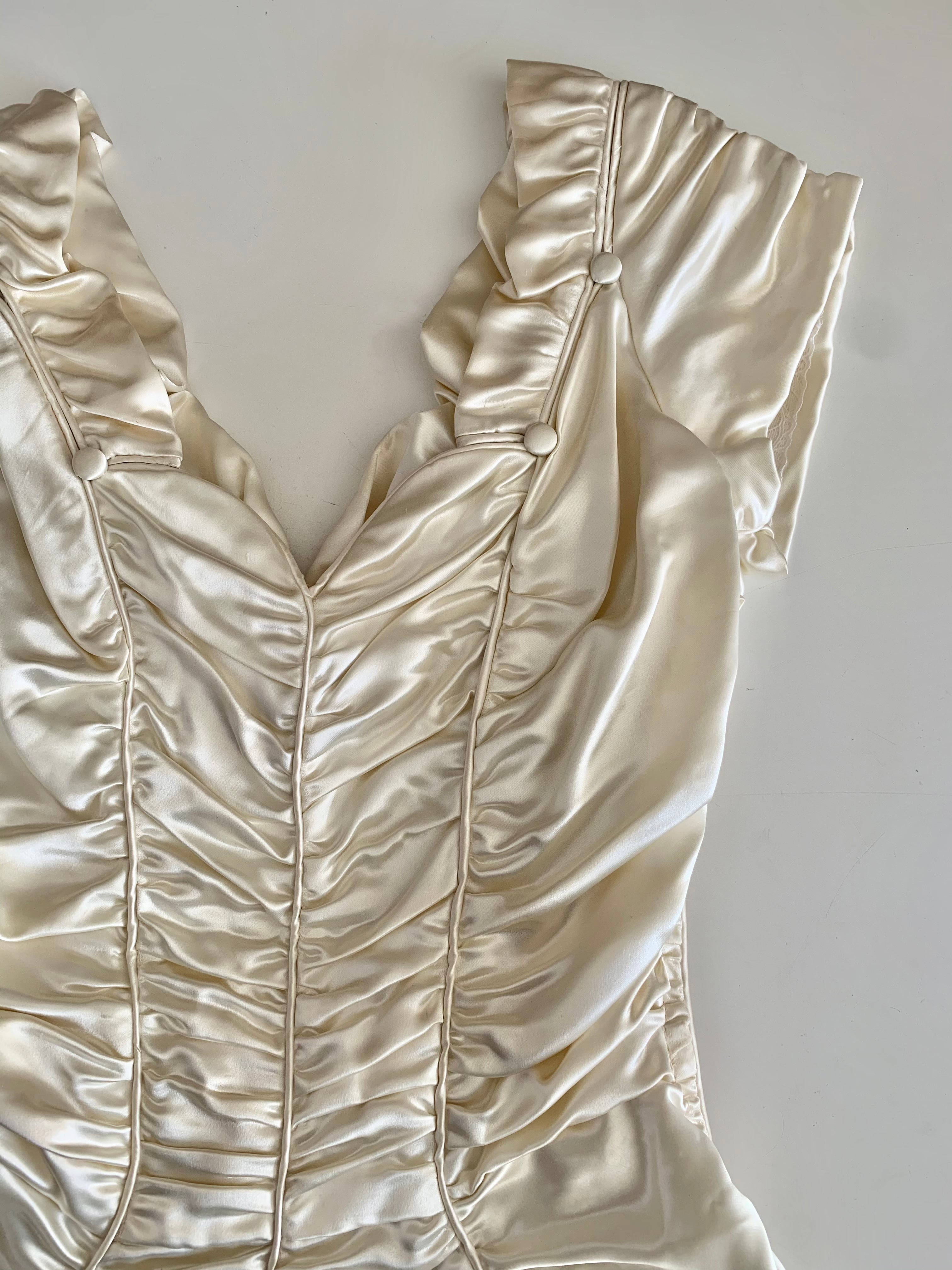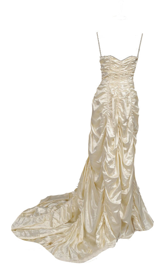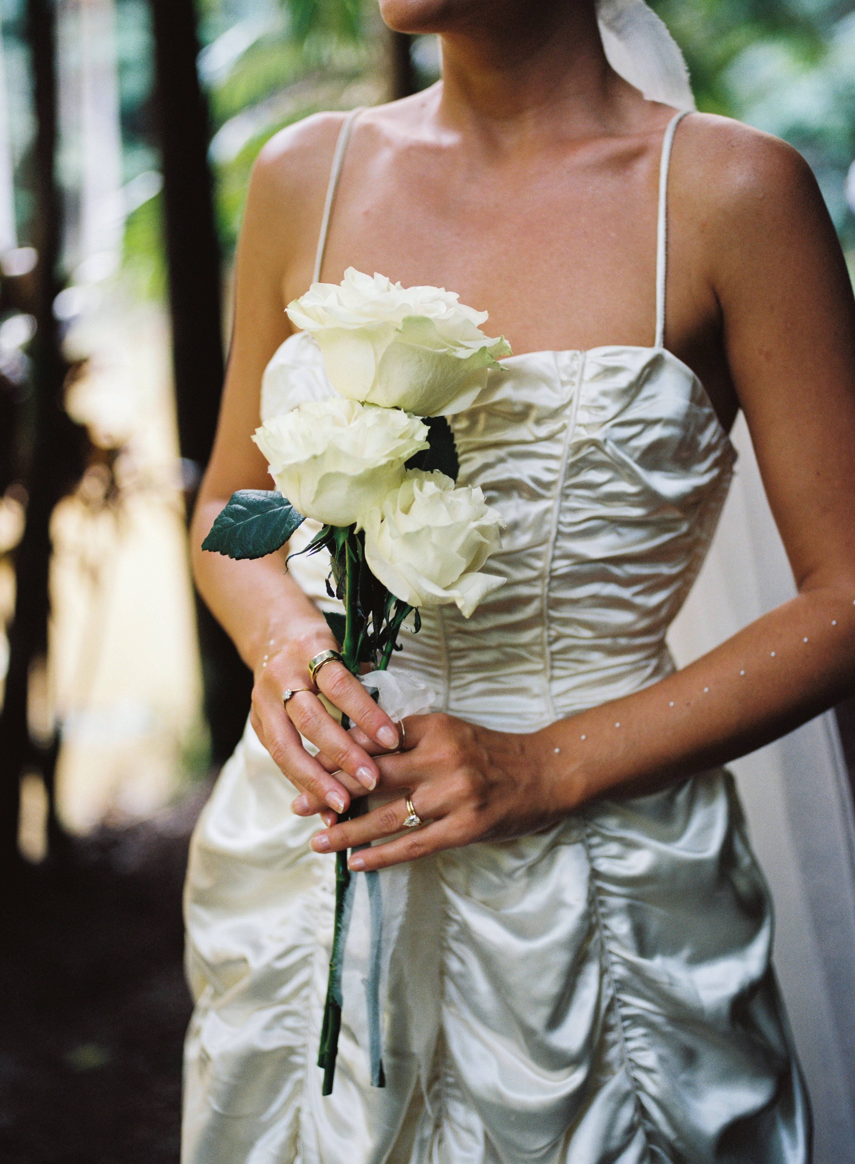 I found my original 1940s wedding dress from an American seller on Etsy. I was working with my 'Good Bones' mantra, it was a bespoke gown made of reams of heavy champagne silk-satin. I was instantly drawn to the dramatic texture of it. I still remember my heart racing when it came up in my search. Vintage is a drug!